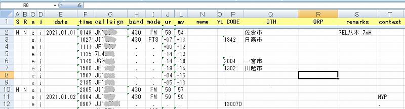 EXCELへの記帳が済んだら、これを手前味噌のソフトでADIFファイルに変換して、
