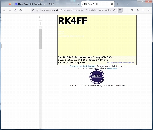 (5)「DL開始」ボタンを押すと、最初のQSOデータのQSLカードの画像がブラウザに