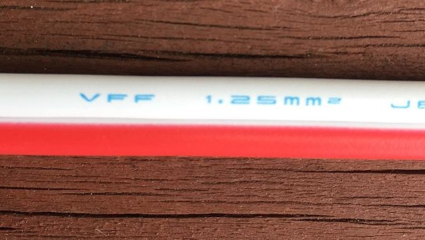 1)VFF-1.25S-赤白の平行ビニール線を、2線のまま、5.16mの長さにカットします。