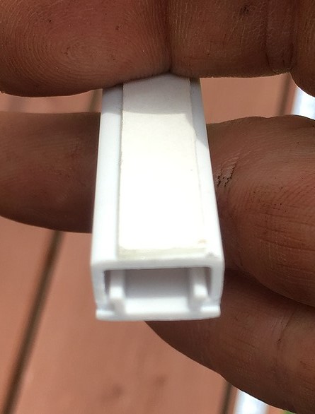 DIY店で手に入る、配線用のモールの下部分だけを短冊状にカットして使います。G5RV-Halfであれば、1m物が1本あれば十分です。