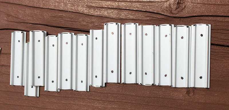 ↑モールを35mmの短冊にカットして、間隔27mmで2か所の穴を開けます。穴径は3.5mm