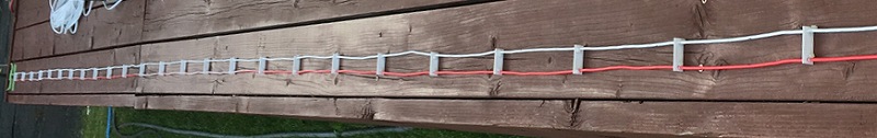 ↑ラダーラインに使うビニール被覆の平行2線。わざわざ赤白を選んだのは、アンテナを上げた時に