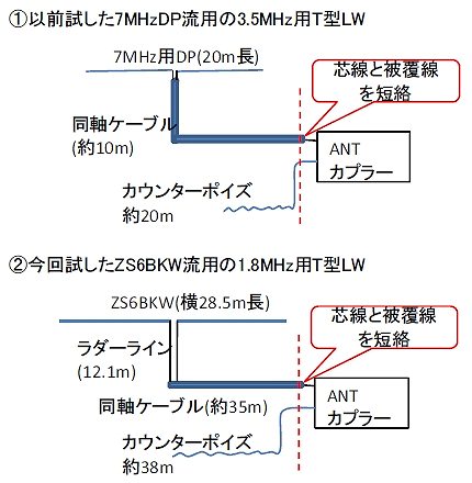 (35m)を一体化して、T型のLWと見立てたものです。合計の長さがλ/4より