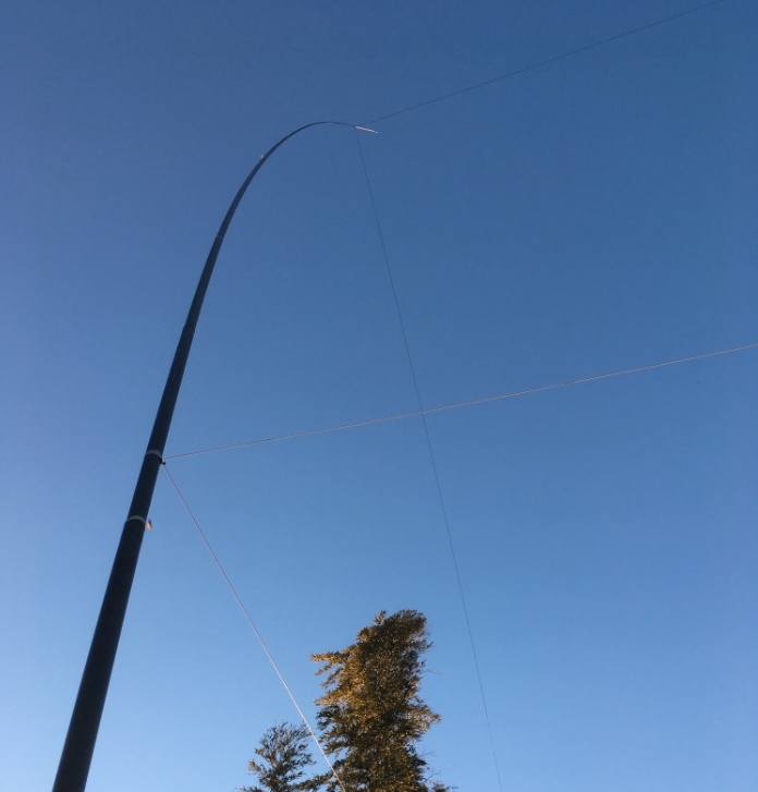 「く」の字に張ったワイヤー、上エレメントの高さは11mH