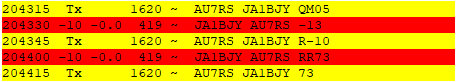 AU7RSの信号はレーダーノイズレベルを乗り越えて長い時間入感しておりました。