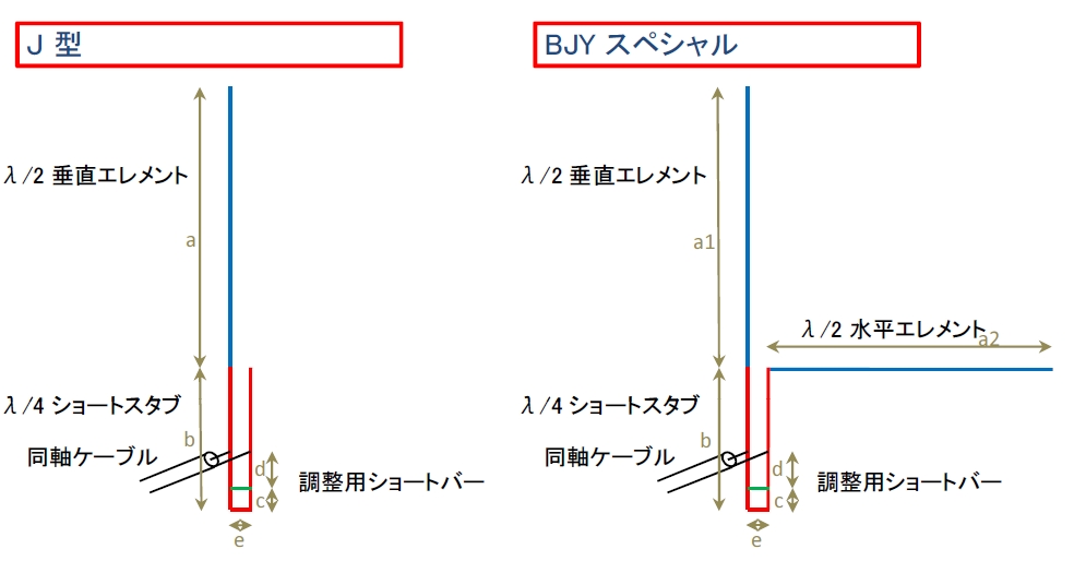 "BJY-Special" と "J型ANT" について、私が実際に製作した寸法とSWRを測定データとして