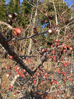 2月に入り、交互に寒暖の日が続いたせいか、庭の梅が例年より早く咲き始めました。